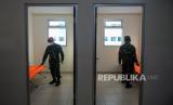 REPUBLIKA.CO.ID, JAKARTA -- Petugas mempersiapkan ruang isolasi pasien Covid-19 di Rumah Susun Nagrak, Cilincing, Jakarta Utara, Jumat (18/6).