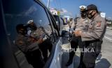 Petugas kepolisian memeriksa identitas dan surat keterangan sehat dari pengemudi kendaraan dengan pelat nomor luar Bandung saat operasi ppkm mikro di gerbang keluar Tol Soreang, Kabupaten Bandung, Ahad (20/6). Penyekatan dan pemeriksaan tersebut merupakan tindak lanjut dari status wilayah Bandung Raya siaga satu Covid-19 serta ditujukan untuk menekan mobilitas kendaraan agar tidak masuk ke wilayah Bandung Raya demi mencegah penyebaran Covid-19. Foto: Republika/Abdan Syakura (FOTO : REPUBLIKA/ABDAN SYAKURA)