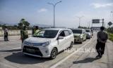 Petugas gabungan memeriksa kedaraan dengan nomor polisi luar Bandung. .