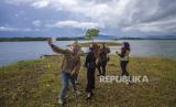 REPUBLIKA.CO.ID, Pengunjung berswafoto dengan latar belakang Waduk Riam Kanan di Kawasan Wisata Bukit Batu, Desa Sungai Luar Tiwingan Baru, Kabupaten Banjar, Kalimantan Selatan, Sabtu (19/6/2021).