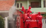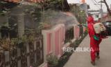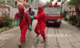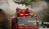 REPUBLIKA.CO.ID, JAKARTA -- Petugas Pemadam Kebakaran (Damkar) melakukann penyemprotan cairan ekoenzim untuk mencegah penyebaran virus covid 19 di lingkungan perumahan Komplek Depkes RW 04 Sunter Jaya, Jakarta, Ahad (20/6).