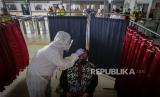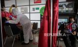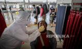 REPUBLIKA.CO.ID, TANGERANG -- Petugas melakukan tes cepat antigen kepada calon penumpang kereta listrik (KRL) di Stasiun Tangerang, Banten, Senin (21/6/2021). PT Kereta Commuter Indonesia melakukan tes antigen acak bagi calon penumpang KRL di enam stasiun di Jabotabek seiring meningkatnya kasus COVID-19 di wilayah Jakarta dan sekitarnya.