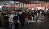 REPUBLIKA.CO.ID, BANYUMAS -- Petugas melakukan vaksinasi COVID-19 kepada pedagang di Pasar Wage Purwokerto, Banyumas, Jateng, Senin (21/6). Satgas COVID-19 Kabupaten Banyumas melakukan vaksinasi pedagang pasar tradisional terkait rencana pembatasan kegiatan masyarakat pada Kamis (24/6), agar kegiatan ekonomi di pasar tradisional nantinya dapat tetap berjalan.
