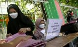 Penyedia jasa layanan pendaftaran Penerimaan Peserta Didik Baru (PPDB) 2021 secara daring melayani orang tua calon siswa di Makassar, Sulawesi Selatan, Senin (21/6/2021). Pendaftaran PPDB 2021 jalur zonasi tingkat TK, SD dan SMP di Makassar dilaksanakan secara daring guna mencegah penularan COVID-19 dan berlangsung pada 21-25 Juni 2021. (FOTO : ANTARA FOTO/ARNAS PADDA)