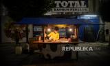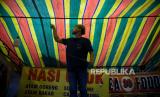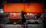 Pedagang merapikan dagangannya saat jam pembatasan kegiatan di kawasan Jalan Sabang, Jakarta, Senin (21/6). Polda Metro Jaya melakukan penutupan 10 ruas jalan di Jakarta pada pukul 21.00 hingga 04.00 WIB mulai hari ini Senin 21 Juni 2021 dalam rangka pembatasan kegiatan masyarakat mengingat kasus positif Covid-19 harian di Jakarta mengalami peningkatan. Republika/Thoudy Badai (FOTO : Republika/Thoudy Badai)