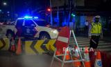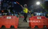 REPUBLIKA.CO.ID, JAKARTA -- Petugas Satpol PP berjaga di kawasan Sabang saat jam penutupan jalan di Jakarta, Senin (21/6). Polda Metro Jaya melakukan penutupan 10 ruas jalan di Jakarta pada pukul 21.00 hingga 04.00 WIB mulai hari ini Senin 21 Juni 2021 dalam rangka pembatasan kegiatan masyarakat mengingat kasus positif Covid-19 harian di Jakarta mengalami peningkatan.