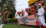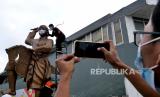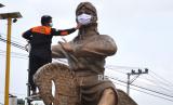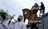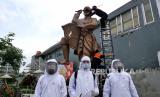 REPUBLIKA.CO.ID, BANTUL -- Petugas BPBD Kabupaten Bantul memasangkan masker pada patung kuda lumping di Taman Paseban, Bantul, Yogyakarta, Rabu (23/6). Bentuk kampanye bermasker dengan memasang masker pada patung kuda lumping di taman tersebut. Kampanye ini untuk mengingatkan kesadaran masyarakat untuk tertib bermasker, untuk menghambat penyebaran Covid-19.