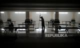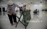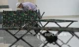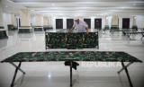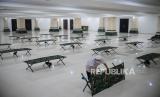 REPUBLIKA.CO.ID, JAKARTA -- Petugas mengecek tempat tidur lipat untuk pasien OTG di Aula Masjid Hasyim Asyari, Jakarta Barat, Rabu (23/6). Sebanyak 100 tempat tidur lipat disiapkan di Aula Masjid Hasyim Asyari untuk dijadikan tempat isolasi mandiri pasien Covid-19 status Orang Tanpa Gejala (OTG), mengingat jumlah kasus harian Covid-19 di DKI Jakarta mengalami peningkatan beberapa hari terakhir.