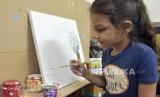 Seniman termuda di Suriah, Rayan al-Abed (5 tahun) saat melukis di rumahnya di Damaskus, Suriah, Sabtu (19/6). Belum lama ini, Rayan mengadakan pameran tunggal di Pusat Kebudayaan Suriah. Dia mulai melukis sejak usia dua tahun karena melihat kakeknya Bashir al-Bashir yang juga seorang seniman. EPA-EFE/YOUSSEF BADAWI ATTENTION: This Image is part of a PHOTO SETPutra M. Akbar (FOTO : EPA-EFE/YOUSSEF BADAWI)