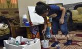 REPUBLIKA.CO.ID, DAMASKUS -- Seniman termuda di Suriah, Rayan al-Abed (5 tahun) beraktivitas di rumahnya di Damaskus, Suriah, Sabtu (19/6). Belum lama ini, Rayan mengadakan pameran tunggal di Pusat Kebudayaan Suriah. Dia mulai melukis sejak usia dua tahun karena melihat kakeknya Bashir al-Bashir yang juga seorang seniman.