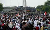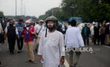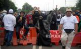REPUBLIKA.CO.ID, JAKARTA -- Petugas Kepolisian memblokade massa pendukung Habib Rizieq Shihab saat akan menuju Pengadilan Negeri Jakarta Timur di Jalan I Gusti Ngurah Rai, Jakarta, Kamis (24/6). Aksi massa tersebut dalam rangka mengawal sidang pembacaan vonis terhadap Habib Rizieq Shihab terkait kasus tes Swab di Rumah Sakit Ummi, Bogor.