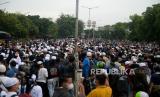Massa aksi dari pendukung Habib Rizieq Shihab (HRS) memadati Jalan I Gusti Ngurah Rai menuju Pengadilan Negeri Jakarta Timur, Jakarta, Kamis (24/6). Aksi massa tersebut dalam rangka mengawal sidang pembacaan vonis terhadap Habib Rizieq Shihab terkait kasus tes Swab di Rumah Sakit Ummi, Bogor. (FOTO : Republika/Thoudy Badai)