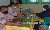 Sejumlah orang tua calon siswa antre menunggu giliran mendaftar ke Panitia Penerimaan Peserta Didik Baru (PPDB) di SMP Negeri 1 Serang, Banten, Kamis (24/6/2021). Sebagian besar proses PPDB di Banten terpaksa dilakukan secara offline karena jalur online sulit diakses padahal tengat pendaftaran segera berakhir. (FOTO : Antara/Asep Fathulrahman)