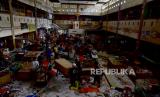 Pedagang melewati kios kosong saat proses pembongkaran bangunan Pasar Mardika di Kota Ambon, Provinsi Maluku, Kamis (24/6/2021). Pemerintah Kota Ambon membongkar bangunan lama Pasar Mardika, yang merupakan pasar terbesar di Ibukota Provinsi Maluku itu, untuk merevitalisasi pasar dengan konsep modern dengan anggaran Rp160 miliar dan 1.400 kios sementara disiapkan guna menampung pedagang selama revitalisasi. (FOTO : ANTARA/FB Anggoro)