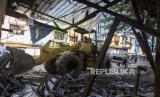 Sebuah alat berat meruntuhkan bangunan Pasar Mardika di Kota Ambon, Provinsi Maluku, Kamis (24/6/2021). Pemerintah Kota Ambon membongkar bangunan lama Pasar Mardika, yang merupakan pasar terbesar di Ibukota Provinsi Maluku itu, untuk merevitalisasi pasar dengan konsep modern dengan anggaran Rp160 miliar dan 1.400 kios sementara disiapkan guna menampung pedagang selama revitalisasi. (FOTO : ANTARA/FB Anggoro)