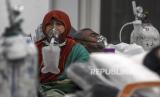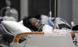 Seorang pasien mengenakan alat bantu pernapasan menunggu hasil PCR dan ruangan rawat inap di Posko Covid-19 dan Pemeriksaan Swab RSUD Al Ihsan, Baleendah, Kabupaten Bandung, Jumat (25/6). Akibat lonjakan kasus positif Covid-19 di Kabupaten Bandung yang saat ini berstatus zona merah Covid-19, tingkat keterisian tempat tidur atau Bed Occupancy Rate (BOR) di rumah sakit tersebut mencapai 95,53 persen, melampaui ambang batas aman BOR yang ditetapkan Organisasi Kesehatan Dunia (WHO) sebesar 60 hingga 80 persen. Republika/Abdan Syakura (FOTO : REPUBLIKA/ABDAN SYAKURA)