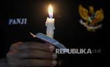 Seorang tenaga kesehatan membawa lilin saat akan memberi penghormatan terakhir pada jenazah rekannya Liza Putri Noviana di Rumah Sakit Darurat COVID-19 (RSDC) Wisma Atlet Kemayoran, Jakarta, Kamis (24/6/2021) Liza merupakan tenaga kesehatan pertama di RSDC yang meninggal dunia karena terpapar COVID-19. (FOTO : Antara/M Risyal Hidayat)
