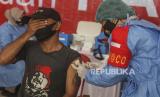REPUBLIKA.CO.ID, DEPOK -- Petugas medis menyuntikkan vaksin COVID-19 kepada warga saat vaksinasi massal di Terminal Jatijajar, Depok, Jawa Barat, Jumat (25/6/2021). Pemerintah Kota Depok menyelenggarakan vaksinasi COVID-19 massal dengan target 3.000 orang tersebut terdiri dari 1.700 pengemudi ojek daring, 300 pelaku transportasi, 150 pengelola Terminal Jatijajar dan 850 masyarakat umum yang berdomisili di Kota Depok.