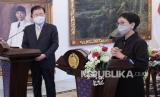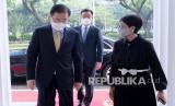 REPUBLIKA.CO.ID, JAKARTA -- Menteri Luar Negeri Retno Marsudi menerima kunjungan Menteri Luar Negeri Korea Selatan Chung Eui-yong sebelum melakukan pertemuan bilateral di Gedung Pancasila, Jakarta, Jumat (25/6). Pertemuan bilateral kedua negara tersebut membahas kerja sama di bidang kesehatan, diantaranya pengadaan APD, peralatan diagnostik, obat-obatan serta pengembangan vaksin.