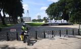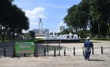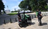 REPUBLIKA.CO.ID, JAKARTA -- Petugas gabungan memberikan penjelasan soal ditutupnya Taman Lapangan Banteng untuk sementara kepada pengendara motor di Jakarta, Jumat (25/6/2021). Pemprov DKI Jakarta menutup kembali taman-taman kota di Jakarta selama masa Pemberlakukan Pembatasan Kegiatan Masyarakat (PPKM) Mikro untuk mencegah timbulnya kerumunan yang berpotensi menciptakan klaster baru COVID-19.