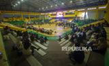 Suasana vaksinasi COVID-19 di GOR Hasanuddin HM, Banjarmasin, Kalimantan Selatan, Sabtu (26/6/2021). Dinas Kesehatan bersama TNI dan POLRI menggelar vaksinasi COVID-19 massal dalam rangka target satu juta vaksin yang menjadi program pemerintah pusat dengan sasaran lansia, pralansia, guru/dosen, ODGJ, disabilitas, masyarakat umum dan masyarakat rentan untuk mencapai kekebalan komunal atau herd immunity menuju Indonesia sehat bebas COVID-19. ANTARA FOTO/Bayu Pratama S/rwa. (FOTO : ANTARA FOTO)