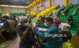 REPUBLIKA.CO.ID, BANJARMASIN -- Petugas kesehatan menyuntikkan vaksin COVID-19 pada warga saat vaksinasi COVID-19 massal di GOR Hasanuddin HM, Banjarmasin, Kalimantan Selatan, Sabtu (26/6/2021). Dinas Kesehatan bersama TNI dan POLRI menggelar vaksinasi COVID-19 massal dalam rangka target satu juta vaksin yang menjadi program pemerintah pusat dengan sasaran lansia, pralansia, guru/dosen, ODGJ, disabilitas, masyarakat umum dan masyarakat rentan untuk mencapai kekebalan komunal atau herd immunity menuju Indonesia sehat bebas COVID-19.