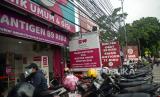 REPUBLIKA.CO.ID, JAKARTA -- Suasana tempat pemeriksaan swab antigen di klinik Kawasan Warung Buncit, Jakarta, Senin (28/6). Meningkatnya kasus Covid-19 di DKI Jakarta saat ini, pemeriksaan swab antigen merupakan hal yang penting untuk mendeteksi virus Covid-19 dalam tubuh seseorang. Sejumlah klink pun memasang harga yang variatif dan terbilang terjangkau untuk pemeriksaan swab antigen.