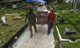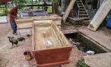 REPUBLIKA.CO.ID, JAKARTA -- Pekerja menyelesaikan pembuatan peti mati di Yayasan Sahabat Duka, di TPU Pondok Kelapa, Jakarta, Senin (28/6/2021). Pekerja mengatakan permintaan peti mati meningkat sebulan terakhir dengan produksi 20 hingga 30 peti per-hari untuk memenuhi permintaan rumah sakit rujukan COVID-19 di DKI Jakarta.