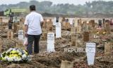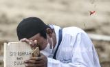 REPUBLIKA.CO.ID, JAKARTA -- Warga menangis di atas nisan keluarganya di area pemakaman khusus COVID-19 di TPU Rorotan, Cilincing, Jakarta Utara, Senin (28/6/2021). Satuan Tugas (Satgas) Penanganan COVID-19 mencatat kasus baru COVID-19 di Indonesia hingga Senin (28/6/2021) pukul 12:00 WIB bertambah 20.694 kasus diantaranya DKI Jakarta mencatat penambahan kasus terbanyak dengan jumlah 8.348 kasus, Jawa Barat dengan 4.771 kasus dan Jawa Tengah dengan 2.143 kasus, sehingga secara total mencapai 2.135.998 kasus.