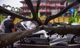 Pohon tumbang yang menimpa angkot, dan kendaraan pribadi ini menewaskan dua warga..