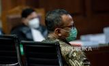 Terdakwa mantan Menteri Kelautan dan Perikanan Edhy Prabowo saat menjalani sidang lanjutan terkait kasus suap izin ekspor benih lobster tahun 2020 di Pengadilan Tipikor, Jakarta, Selasa (28/6). Sidang tersebut beragendakan pembacaan tuntutan dari Jaksa Penuntut Umum (JPU). Republika/Thoudy Badai (FOTO : Republika/Thoudy Badai)