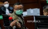 Terdakwa mantan Menteri Kelautan dan Perikanan Edhy Prabowo berjalan memasuki ruang persidangan saat sidang lanjutan terkait kasus suap izin ekspor benih lobster tahun 2020 di Pengadilan Tipikor, Jakarta, Selasa (28/6). Sidang tersebut beragendakan pembacaan tuntutan dari Jaksa Penuntut Umum (JPU). Republika/Thoudy Badai (FOTO : Republika/Thoudy Badai)