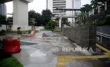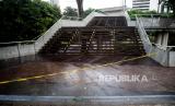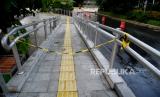 Tali pembatas terpasang di Area Skate Park, Spot Budaya Dukuh Atas, Jakarta, Selasa (29/6). Pemprov DKI Jakarta menutup seluruh ruang terbuka hijau (RTH) termasuk taman kota dan hutan kota sampai batas yang akan diinformasikan kembali, hal tersebut guna menangani lonjakan kasus aktif Covid-19 di Jakarta dan mencegah klaster baru.Prayogi/Republika (FOTO : Prayogi/Republika.)