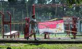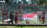 REPUBLIKA.CO.ID, Fasilitas kebugaran umum di Lapangan Ciujung, Kota Bandung, yang biasa ramai oleh warga pagi dan sore hari saat ini ditutup, Selasa (29/6). Penutupan ini pun merupakan bagian dari penutupan area publik, sebagai upaya mecegah semakin melonjaknya kasus positif Covid-19 di Kota Bandung.