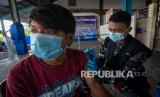 REPUBLIKA.CO.ID, JAKARTA -- Petugas TNI Angkatan Laut (AL) menyuntikkan vaksin COVID-19 kepada pelaku usaha perikanan di Pelabuhan Perikanan Muara Angke, Penjaringan, Jakarta, Selasa (29/6/2021). TNI Angkatan Laut (AL) menggelar Serbuan Vaksinasi COVID-19 yang menyasar masyarakat maritim setempat dengan target 1.000 orang per hari untuk menyukseskan program pemerintah dalam melakukan vaksinasi kepada satu juta orang per hari. ANTARA FOTO/Aditya Pradana Putra