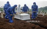 REPUBLIKA.CO.ID, BOGOR -- Pihak keluarga berdoa setelah pemakaman jenazah korban COVID-19 di TPU Pondok Rajeg, Kabupaten Bogor, Jawa Barat, Selasa (29/6/2021). Pemerintah Kabupaten Bogor menyiapkan sepuluh tempat pemakaman khusus pasien COVID-19 yang meninggal dunia dan tersebar di sepuluh Kecamatan, hal tersebut sebagai langkah antisipasi ledakan kasus penularan COVID-19.