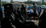 Petugas Suku Dinas (Sudin) Sumber Daya Air (SDA) Jakarta Timur membawa tabung oksigen di tempat pengisian oksigen Aneka Gas Industri di kawasan Cakung, Jakarta Timur, Rabu (30/6). Pemprov DKI Jakarta mengerahkan kendaraan dari berbagai Satuan Kerja Perangkat Daerah (SKPD) atau kedinasan di DKI Jakarta untuk mendistribusikan oksigen ke berbagai rumah sakit rujukan pasien Covid-19. Hal tersebut sebagai upaya mempercepat sirkulasi tabung oksigen yang sempat mengalami kelangkaan beberapa hari lalu akibat dari peningkatan harian kasus Covid-19 di DKI Jakarta. Republika/Thoudy Badai (FOTO : Republika/Thoudy Badai)