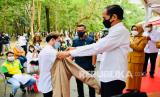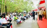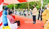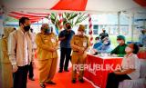 REPUBLIKA.CO.ID, KENDARI -- Presiden RI Joko Widodo menemui pelaku usaha kecil menengah saat vaksinasi COVID-19 di pelataran Kantor Gubernur Sulawesi Tenggara, Kendari, Sulawesi Tenggara, Rabu (30/6). Presiden Jokowi menyampaikan target pada Juli 2021 jumlah vaksinasi 1 juta orang per hari sedangkan pada Agustus 2021 mendatang ditargetkan 2 juta orang per harinya.