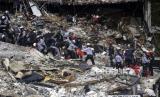 Cara mengatakan, operasi pencarian dan penyelamatan berlanjut sepanjang Selasa, meskipun hujan turun. Sekitar 125 orang telah dicatat berada di gedung tersebut.