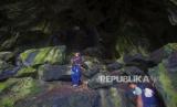 REPUBLIKA.CO.ID, Pemandu wisata Agus (kiri) berada di Goa Batu Sawar di Desa Nateh, Kabupaten Hulu Sungai Tengah, Kalimantan Selatan, Rabu (30/6/2021). Goa Batu Sawar yang terletak di Pegunungan Meratus itu menjadi salah satu wisata alam yang berada di wilayah Geopark Meratus yang mulai dikembangkan Pemerintah Provinsi Kalimantan Selatan untuk menjadi wisata andalan.