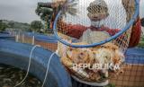 REPUBLIKA.CO.ID, BOGOR -- Ikan nila merah dibudidayakan dengan sistem bioflok di Pesantren Ruhama Al Fajar, Citayam, Tajur Halang, Kabupaten Bogor, Jawa Barat, Rabu (30/6/2021). Budidaya ikan nila dengan sistem bioflok tersebut mampu menghasilkan 2 ton ikan per bulan dengan harga jual Rp35 ribu per kilogram.