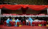 REPUBLIKA.CO.ID, BEKASI -- Suasana kegiatan vaksinasi massal di Stadion Patriot Chandrabhaga, Bekasi, Jawa Barat, Kamis (1/7). Pemerintah Kota (Pemkot) Bekasi menggelar vaksinasi massal untuk 25.000 peserta dengan sasaran warga Bekasi yang dibagi dua sesi yaitu pagi dan siang dalam satu hari.