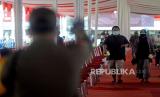 Warga berjalan menuju lokasi penyuntikkan vaksin COVID-19 di Stadion Patriot Chandrabhaga, Bekasi, Jawa Barat, Kamis (1/7). Pemerintah Kota (Pemkot) Bekasi menggelar vaksinasi massal untuk 25.000 peserta dengan sasaran warga Bekasi yang dibagi dua sesi yaitu pagi dan siang dalam satu hari.Prayogi/Republika (FOTO : Prayogi/Republika.)