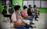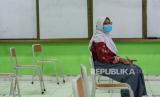 Pelajar menunggu giliran untuk mendapatkan vaksin Covid-19 di SMAN 20 Jakarta, Kamis (1/7). Vaksinasi Covid-19 tersebut diperuntukan bagi kalangan anak usia 12-17 tahun dan akan serentak dilakukan disetiap sekolah di DKI Jakarta sebagai upaya menekan penyebaran virus Covid-19. Republika/Thoudy Badai (FOTO : Republika/Thoudy Badai)
