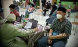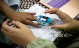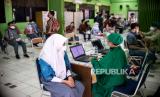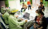 Tenaga kesehatan mengecek kesehatan peserta vaksin Covid-19 di SMAN 20 Jakarta, Kamis (1/7). Vaksinasi Covid-19 tersebut diperuntukan bagi kalangan anak usia 12-17 tahun dan akan serentak dilakukan disetiap sekolah di DKI Jakarta sebagai upaya menekan penyebaran virus Covid-19. (FOTO : Republika/Thoudy Badai)