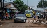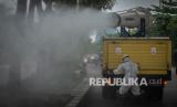 REPUBLIKA.CO.ID,JAKARTA -- Truk Gunner Spraying PMI menyemprotkan cairan disinfektan di Jalan Yos Sudarso, Jakarta Utara, Jakarta, Kamis (1/7/2021).
