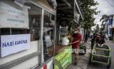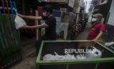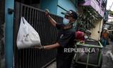 Warga menyimpan paket makanan serta vitamin untuk warga yang sedang menjalani isolasi mandiri di Jalan Sekepanjang, Cikutra, Kota Bandung, Kamis (1/7). Warga yang tergabung dalam Satgas Covid-19 Unity 11 berinisiatif untuk melakukan penyemprotan disinfektan dan menyediakan paket makanan, vitamin serta kebutuhan lainnya secara gratis bagi warga yang sedang menjalani isolasi mandiri di kawasan tersebut sebagai bentuk kepedulian terhadap sesama di tengah pandemi Covid-19. Foto: Republika/Abdan Syakura (FOTO : REPUBLIKA/ABDAN SYAKURA)