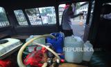 Selain menyemprot lokasi demo , tidak lupa mereka pun mendisinfeksi diri..