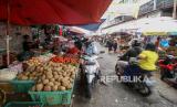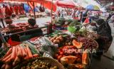 REPUBLIKA.CO.ID, JAKARTA -- Pedagang merapikan dagangannya di Pasar Kebayoran, Jakarta, Kamis (1/7/2021). Badan Pusat Statistik (BPS) mencatat deflasi sebesar 0,16 persen terjadi pada bulan Juni 2021 karena beberapa harga komoditas secara umum menunjukkan adanya penurunan harga pascalebaran. ANTARA FOTO/Rivan Awal Lingga