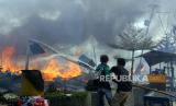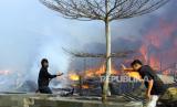 REPUBLIKA.CO.ID, DUMAI -- Api membakar sejumlah rumah di kawasan padat penduduk RT 03 Kampung Dalam Laksamana Dumai, Riau, Kamis (1/7/2021). Kebakaran yang diduga akibat arus pendek arus listrik tersebut menghanguskan delapan rumah kayu dan satu masjid.